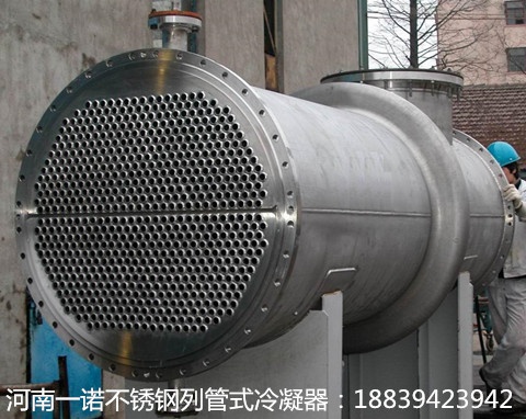 不锈钢列管冷凝器 按材质分为碳钢列管式冷凝器、不锈钢列管式冷凝器和碳钢与不锈钢混合列管式冷凝三种。按形式分为固*管板式、浮头式、U型管式换热器。按结构分为单管程、双管程和多管程。传热面积0.5-500平方米。可根据用户需要定制。适用于在化工、轻工、冶金、制药、食品、化纤等工业中做各种用途的换热设备,尤宜于做冷凝器,代替原有的石墨、玻璃冷凝器。使用后效果显著。